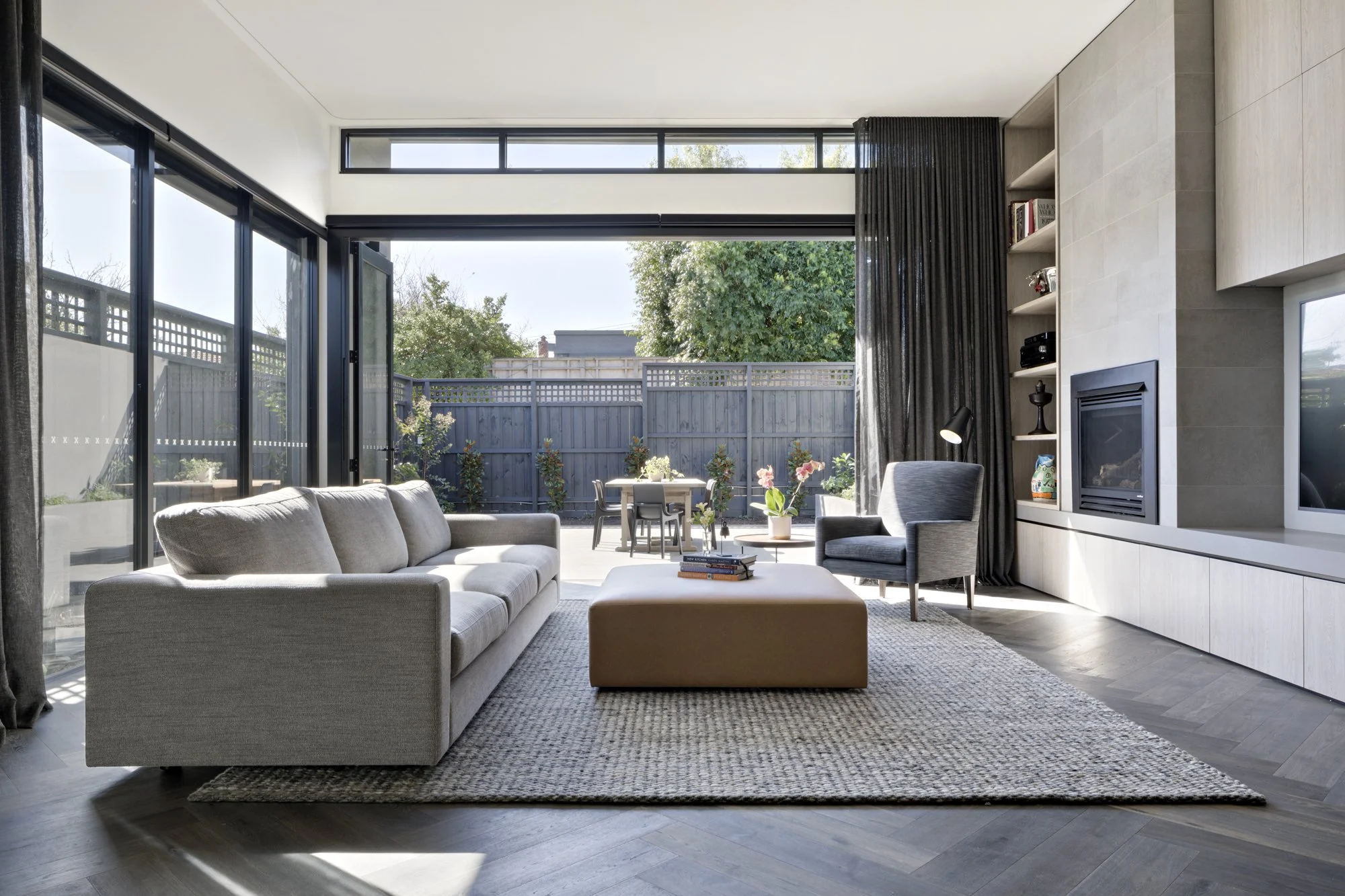 Each townhouse is tailored for modern living, with a downstairs master suite, two separate living zones, and a bright, open-plan kitchen. Full-height stacker doors open onto private gardens, blurring the line between indoors and out, while skylights and highlight windows bring sunlight deep into the interiors. Ample storage, low-maintenance materials, and secure access make them ideal for downsizers or families with older children.
