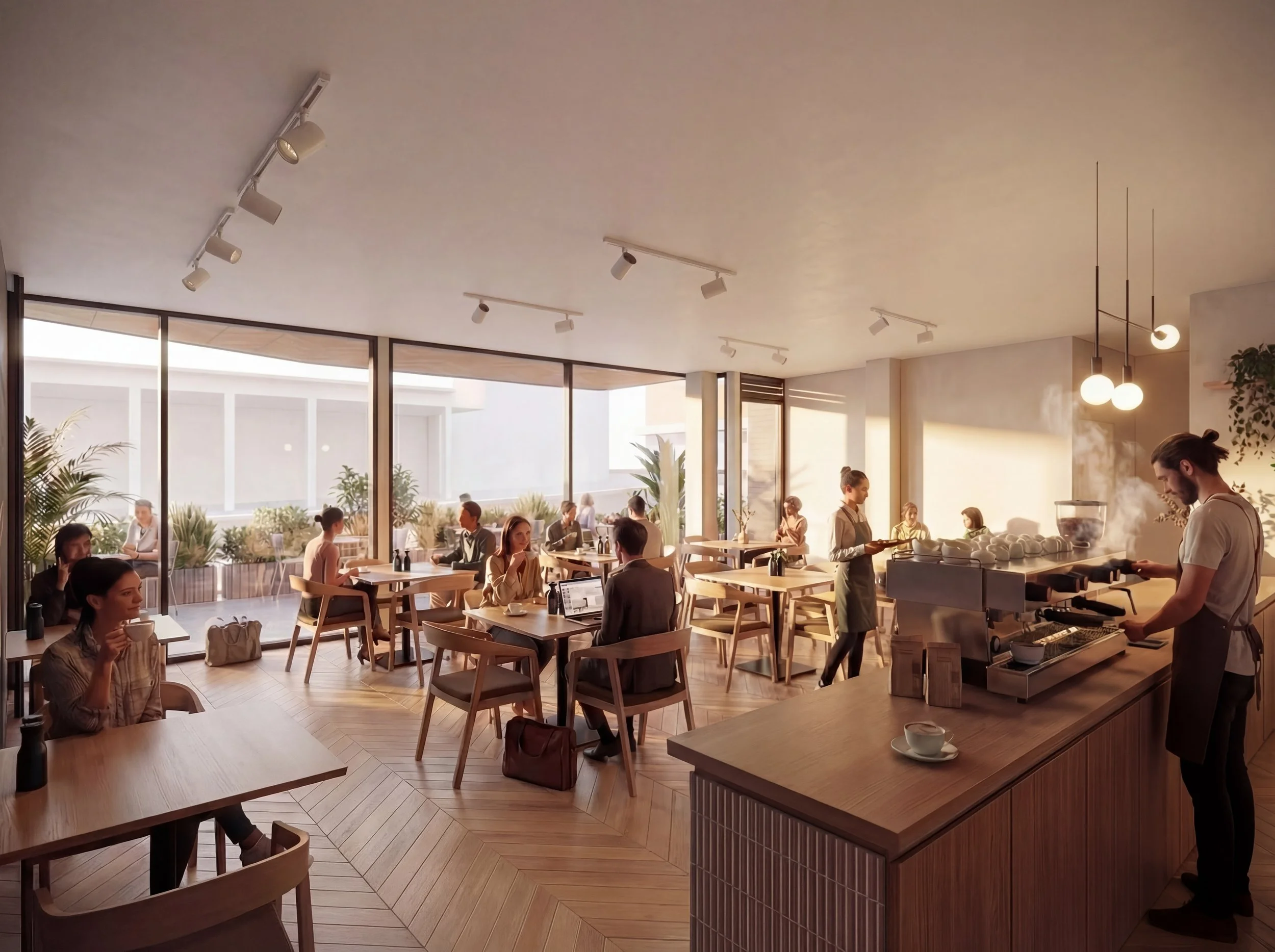 Located on the ground floor of a new mixed-use development in Hawthorn, this café fitout was designed to create a warm, inviting space that encourages customers to relax and linger. The client’s brief called for a balance between modern design and cosy comfort — a space that would feel both contemporary and welcoming.