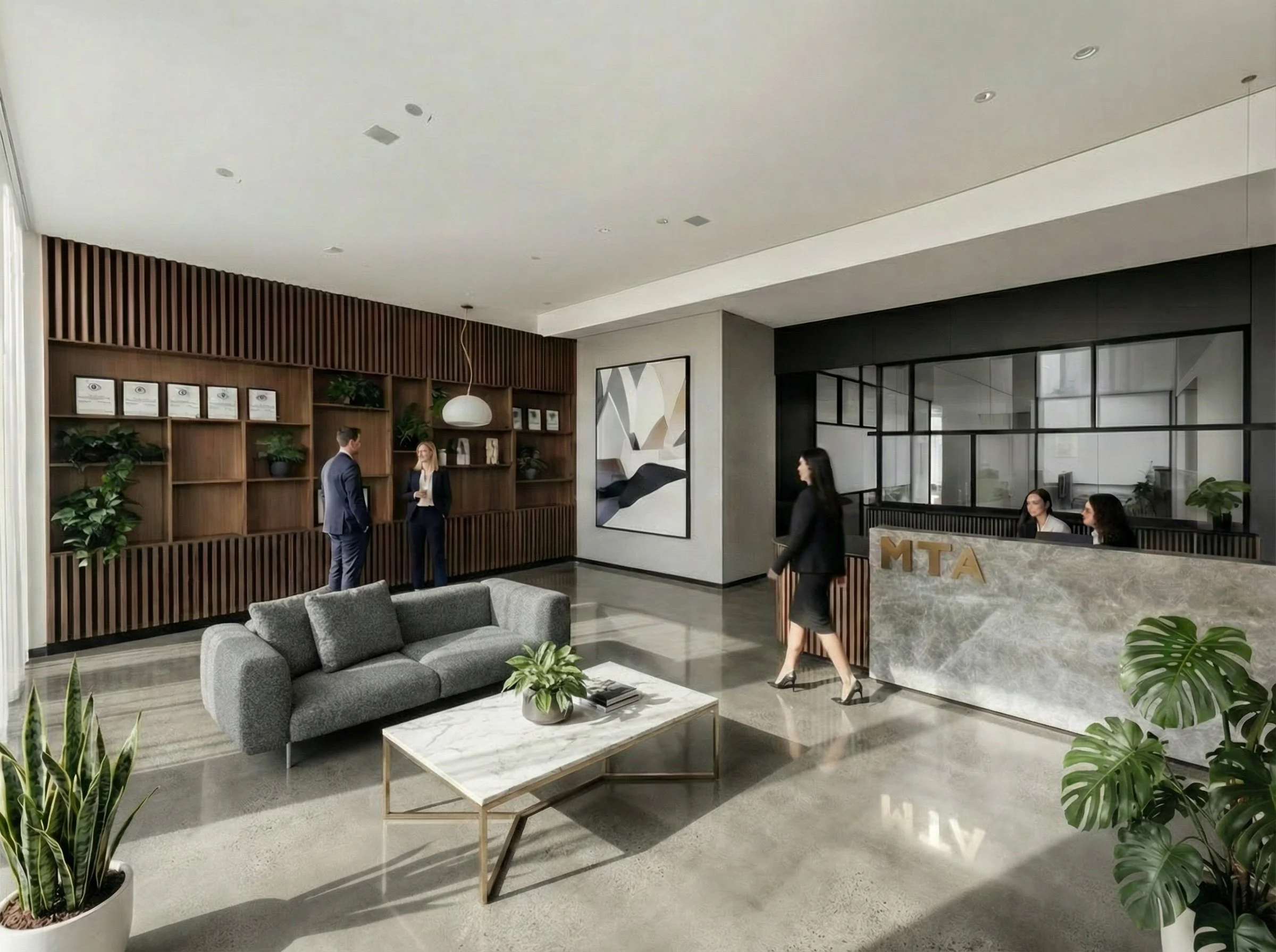 Located on the 7th floor of a commercial building in the heart of Melbourne’s CBD, this finance broker office fitout was designed to reflect the professionalism, warmth, and personality of the business. The brief called for a space that would feel both polished and inviting, making a strong impression on clients while supporting day-to-day operations.